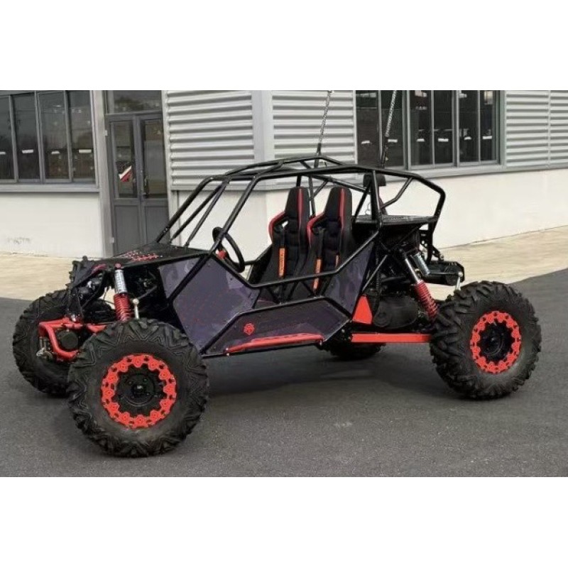 The Buggy featrures long travel A-Arm suspension and a high torque, and performance 1000cc V-Twin engine. The buggy also boasts large ATV XX inch alloy wheels and tyres with Gas damped fully adjustable suspension to soak up the jumps and bumps. We have also fitted the NEW modified padded bucket seats for extra support and comfort.